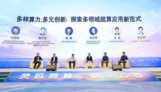 圆桌对话环节以“多样算力,多元创新:探索多领域超算应用新范式”为主题,由国家超级计算深圳中心副主任付昊桓主持。香港中文大学(深圳)教授陈子忠、清华大学教授薛巍、鹏城实验室智能计算部体系结构研究所所长刘方明、华为超智协同实验室主任王龙及中山大学教授王久珂共同参与了此次探讨。嘉宾们聚焦新一代超级计算系统建设,畅想其在生物医药、全地球系统模拟等领域的突破前景。讨论中指出,新超算应承担起生成世界级高质量数据集的重任,构建HPC与AI相辅相成的混合计算生态,更要兼顾科学计算的严谨精度与智能技术的易用性,从而促使先进算力真正赋能千行百业——从气象海洋预报到新材料研发,推动科技创新在更广泛产业中落地生根。